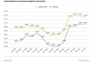 ADAC: Spritpreise sinken mit deutlicher Verzögerung - Super E10 im Wochenvergleich 3,2 Cent günstiger, Diesel 3,4 Cent